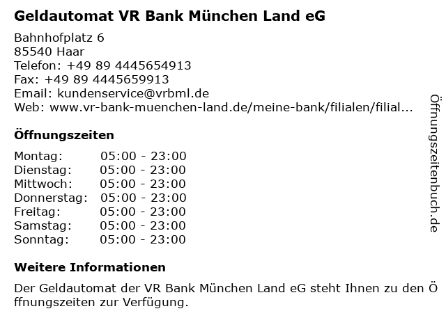 1 5 Geldautomat VR Bank München Land eG (Entfernung: 5,93 km) Poinger Straße 18, 85551 Kirchheim bei München 6 Geldautomat VR Bank München Land eG (Entfernung: 6,20 km) Räterstraße 26, 85551 Kirchheim bei München |