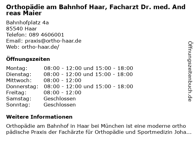 Branchen & Suchbegriffe zu Orthopädie am Bahnhof Haar, Facharzt Dr. med. Andreas Maier:andreas, bahnhof, dr., facharzt, haar, maier, med., orthopädie |