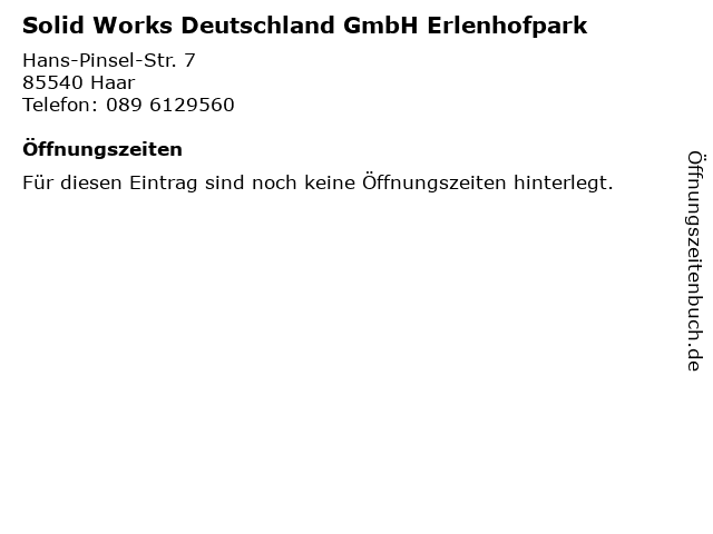 | Solid Works Deutschland GmbH Erlenhofpark anrufen | |
