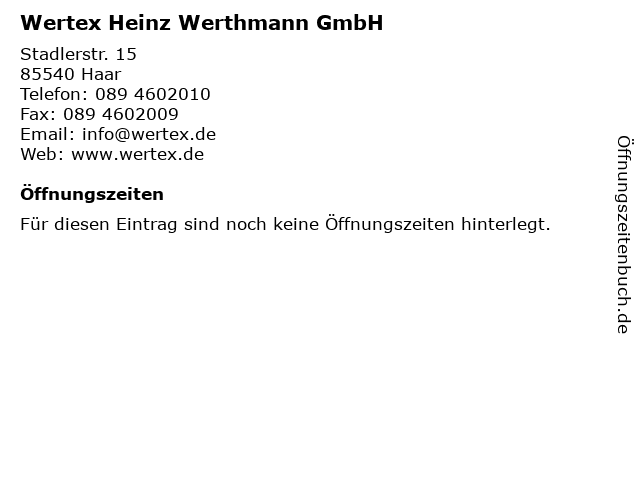 | Öffnungszeiten Wertex Heinz Werthmann GmbH in Haar anzeigen | |