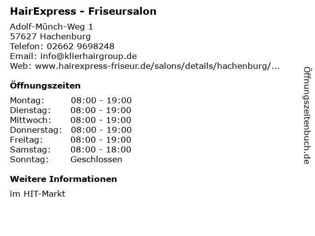 | Branchen & Suchbegriffe zu HairExpress - Friseursalon:friseursalon, geschäft für haarpflegeprodukte, hairexpress, salon für flechtfrisuren, wimpernstudio |