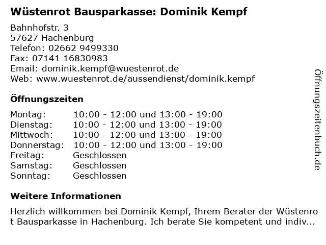 Branchen & Suchbegriffe zu Wüstenrot Bausparkasse: Dominik Kempf:bausparkasse, dominik, kempf, wüstenrot |