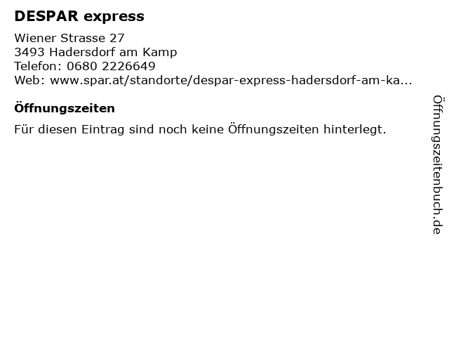 | Öffnungszeiten DESPAR express in Hadersdorf am Kamp anzeigen | |