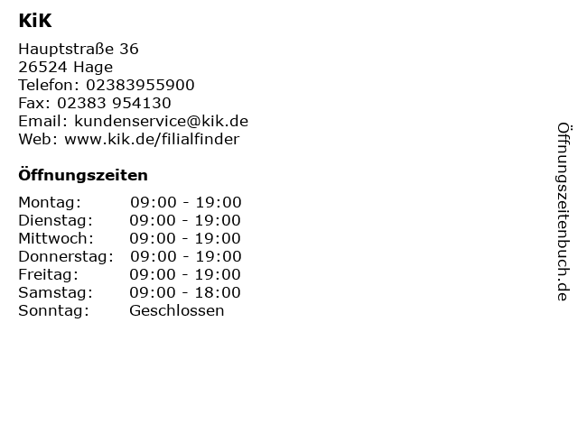 | Öffnungszeiten KiK in Hage anzeigen | |