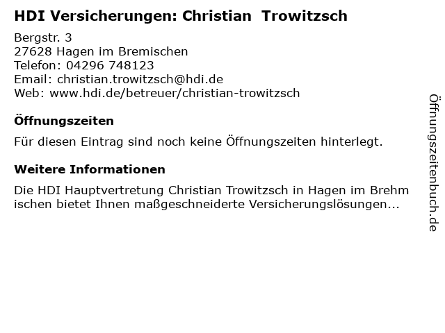 | HDI Versicherungen: Christian Trowitzsch anrufen | |