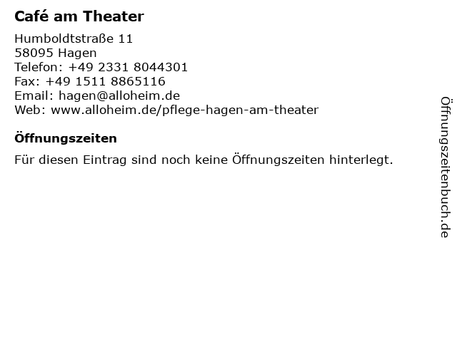 | Öffnungszeiten Café am Theater in Hagen anzeigen | |