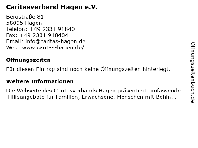 Öffnungszeiten Caritasverband Hagen e.V. in Hagen anzeigen | |