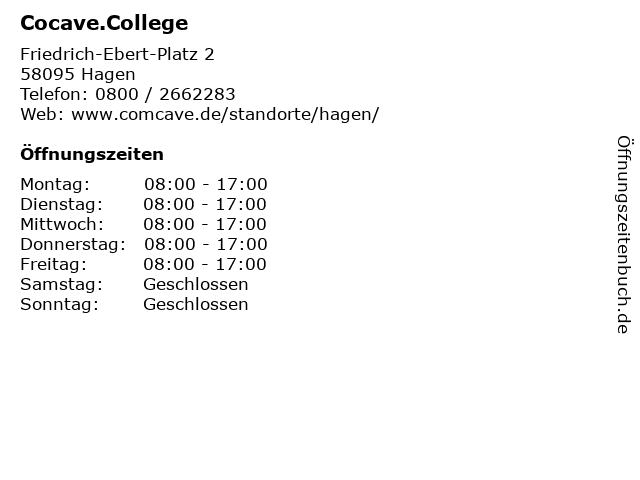 | Öffnungszeiten Cocave.College in Hagen anzeigen | |