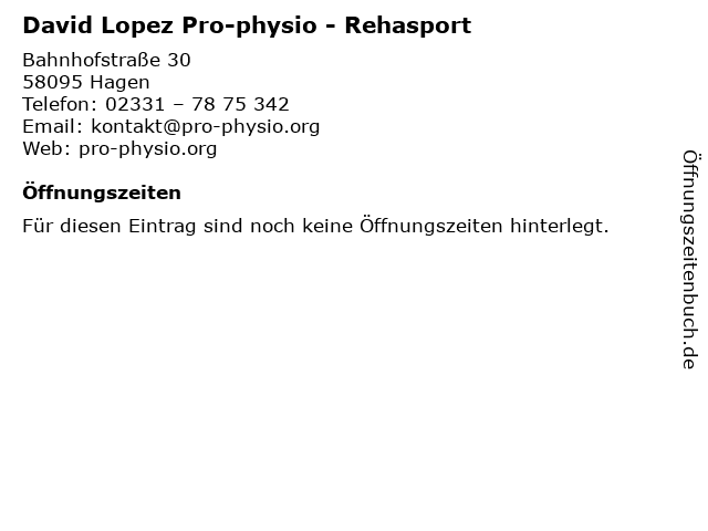 | David Lopez Pro-physio - Rehasport anrufen | |