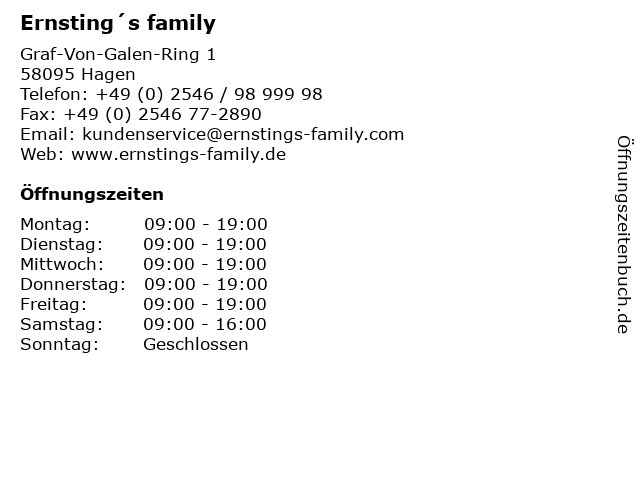 Öffnungszeiten Ernsting´s family in Hagen anzeigen
