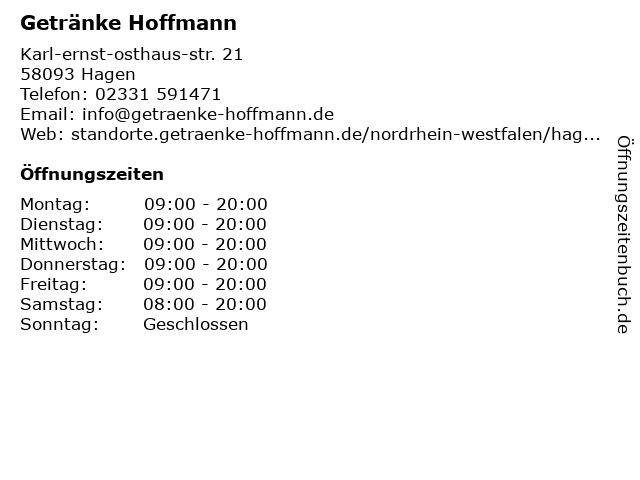 | Öffnungszeiten Getränke Hoffmann in Hagen anzeigen | |