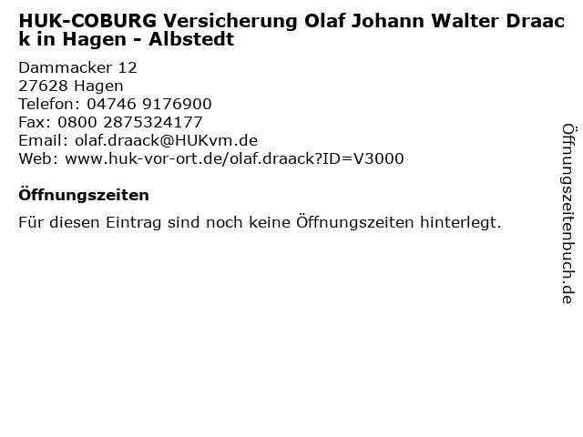 | HUK-COBURG Versicherung Olaf Johann Walter Draack in Hagen - Albstedt anrufen | |