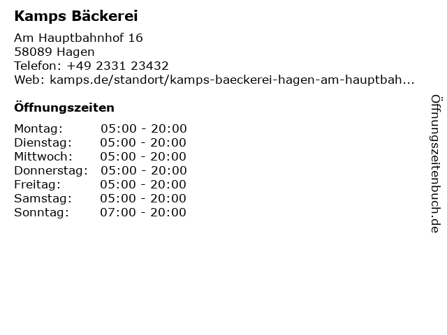 | Öffnungszeiten Kamps Bäckerei in Hagen anzeigen | |