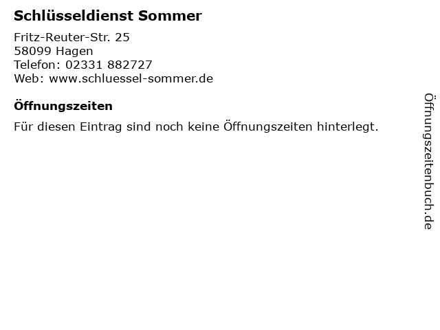 | Öffnungszeiten Schlüsseldienst Sommer in Hagen anzeigen | |