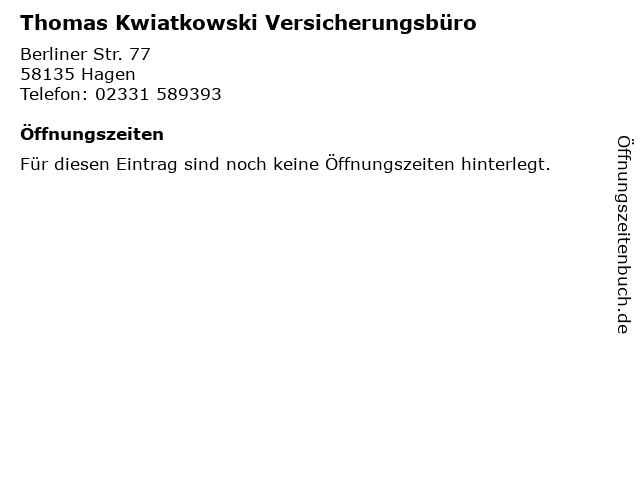 | Thomas Kwiatkowski Versicherungsbüro anrufen | |