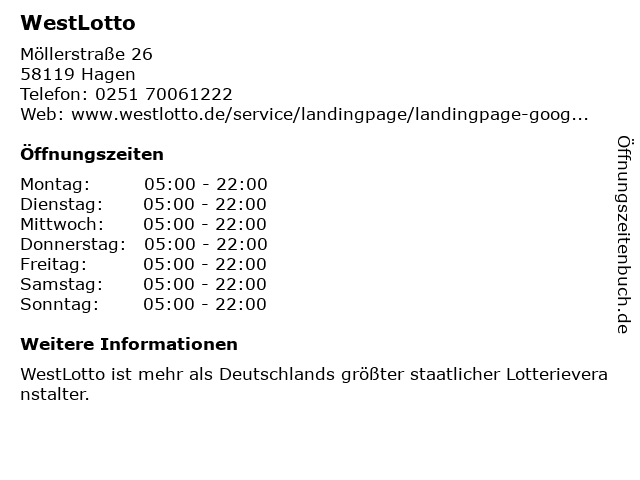 Öffnungszeiten WestLotto in Hagen anzeigen