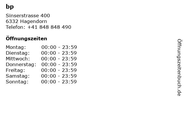 | Öffnungszeiten bp in Hagendorn anzeigen | |