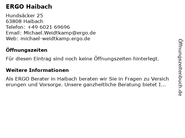 | Öffnungszeiten ERGO Haibach in Haibach anzeigen | |