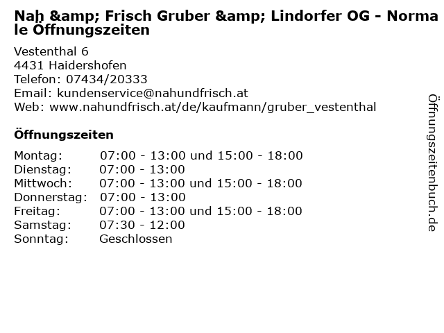 Branchen & Suchbegriffe zu Nah & Frisch Gruber & Lindorfer OG - Normale Öffnungszeiten:frisch, gemüse, gruber, lebensmittel, lindorfer, lotto, nah, nah&frisch, normale, obst, og, öffnungszeiten |