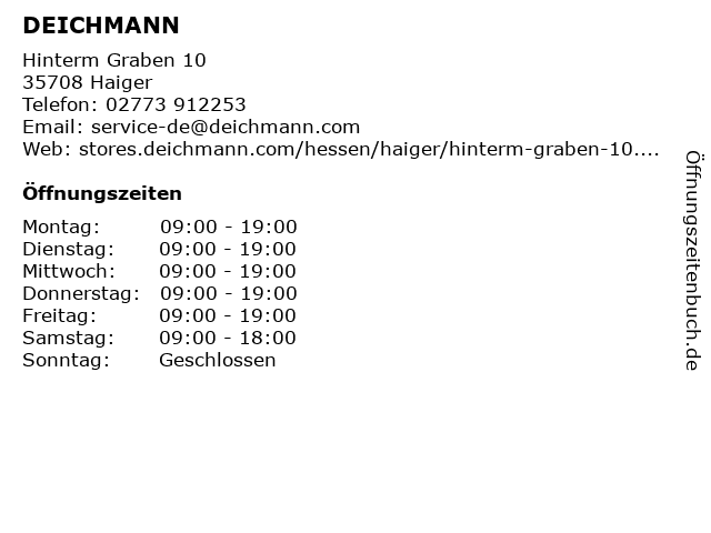 | Öffnungszeiten DEICHMANN in Haiger anzeigen | |