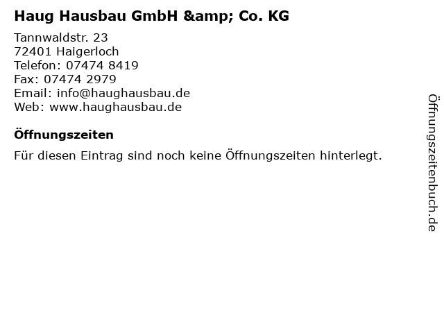 | Öffnungszeiten Haug Hausbau GmbH & Co. KG in Haigerloch anzeigen | |