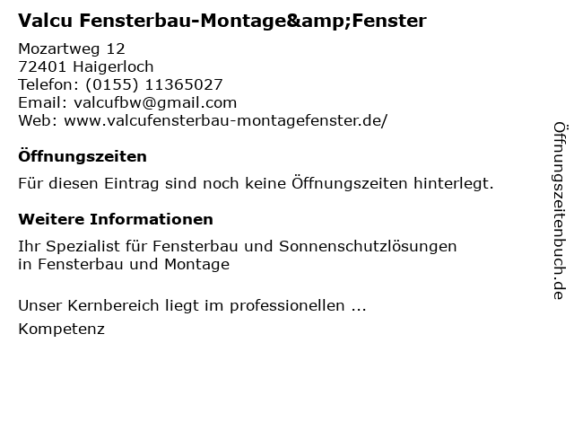 | Valcu Fensterbau-Montage&Fenster anrufen | |