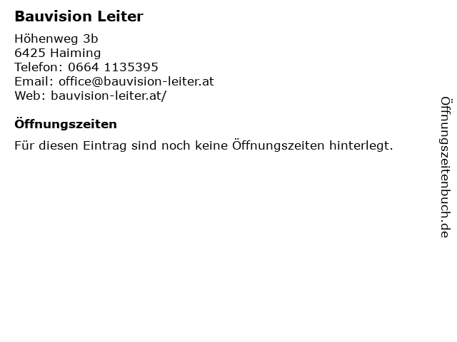 | Öffnungszeiten Bauvision Leiter in Haiming anzeigen | |