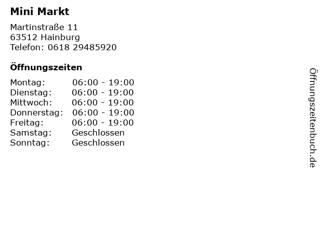 | Öffnungszeiten Mini Markt in Hainburg anzeigen | |