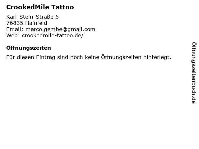 | Öffnungszeiten CrookedMile Tattoo in Hainfeld anzeigen | |