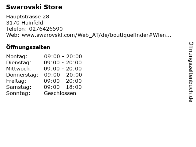 | Öffnungszeiten Swarovski Store in Hainfeld anzeigen | |