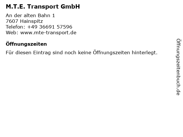 | Öffnungszeiten M.T.E. Transport GmbH in Hainspitz anzeigen | |