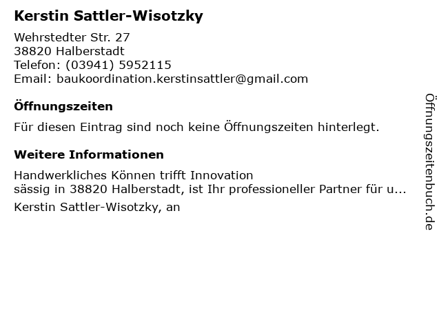 Branchen & Suchbegriffe zu Kerstin Sattler-Wisotzky:kerstin, sattler, sattler-wisotzky, wisotzky |