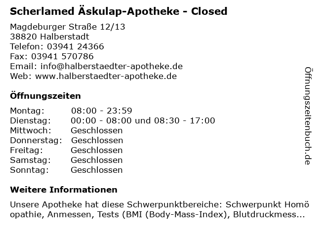 Branchen & Suchbegriffe zu Scherlamed Äskulap-Apotheke - Closed:apotheke, closed, scherlamed, äskulap |