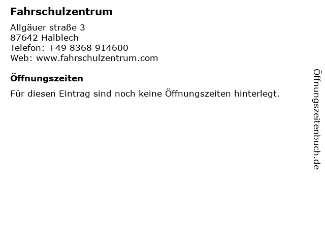 | Öffnungszeiten Fahrschulzentrum in Halblech anzeigen | |
