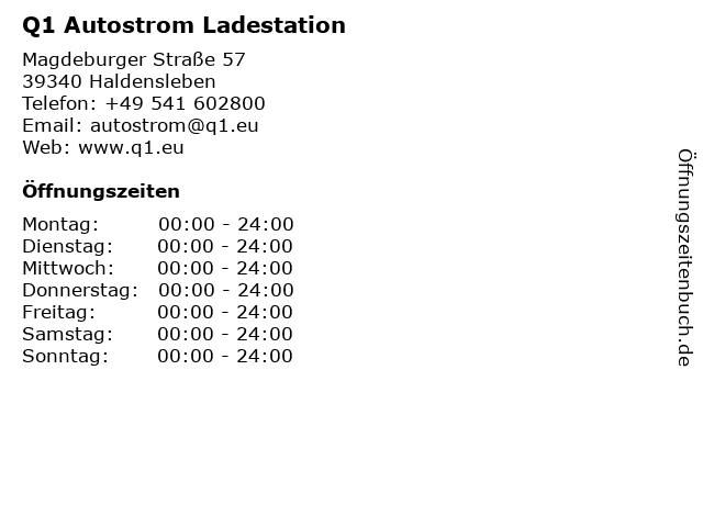 Q1 Autostrom Ladestation in Haldensleben: Telefonnummer, Öffnungszeiten und Adresse