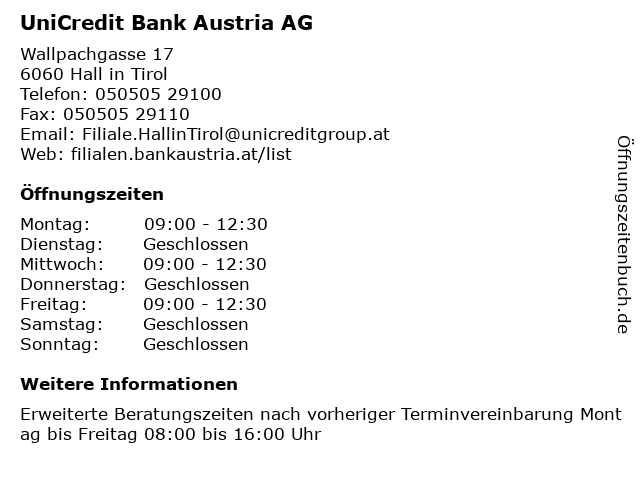 Branchen & Suchbegriffe zu UniCredit Bank Austria AG:abheben, aktien, austria, bank, barrierefrei, beratung, devisen, finanzen, geldautomat, hall, sparen, tirol, unicredit, vorsorge |