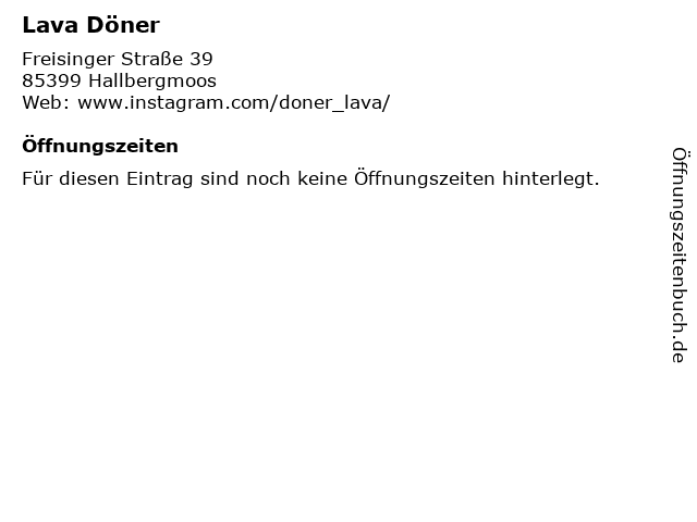 | Öffnungszeiten Lava Döner in Hallbergmoos anzeigen | |