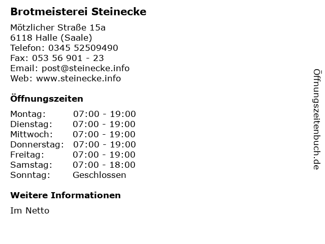 Öffnungszeiten Brotmeisterei Steinecke in Halle (Saale) anzeigen