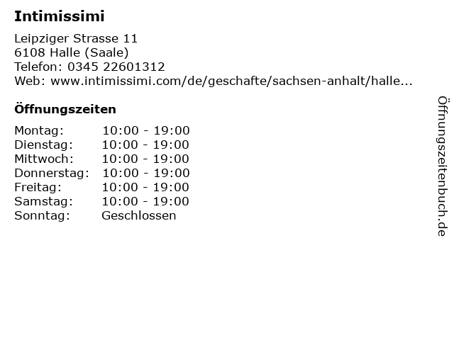 | Öffnungszeiten Intimissimi in Halle (Saale) anzeigen | |