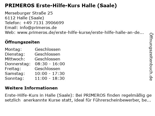Branchen & Suchbegriffe zu PRIMEROS Erste-Hilfe-Kurs Halle (Saale):erste, erste hilfe am unfallort, erste hilfe kurs, erste-hilfe, erste-hilfe-kurs, führerschein sehtest, halle, herz-lungen-wiederbelebung, herzinfarkt, hilfe, kurs, primeros, saale, schlaganfall, stabile seitenlage, verbandmaterial, weiterbildung |