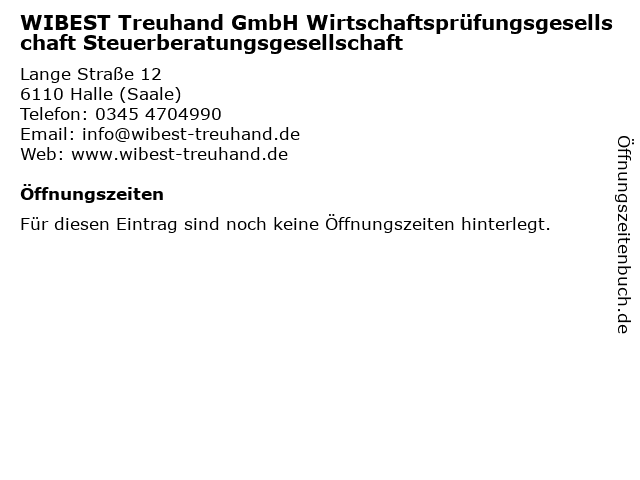 | WIBEST Treuhand GmbH Wirtschaftsprüfungsgesellschaft Steuerberatungsgesellschaft anrufen | |