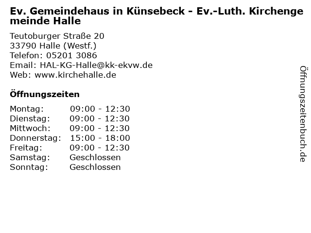 Branchen & Suchbegriffe zu Ev. Gemeindehaus in Künsebeck - Ev.-Luth. Kirchengemeinde Halle:ev., gemeindehaus, halle, kirchengemeinde, künsebeck, luth. |