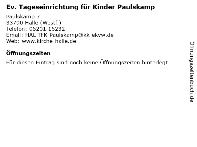 | Ev. Tageseinrichtung für Kinder Paulskamp anrufen | |