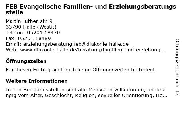 Branchen & Suchbegriffe zu FEB Evangelische Familien- und Erziehungsberatungsstelle:erziehungsberatungsstelle, evangelische, familien, feb |