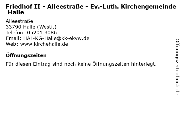 | Friedhof II - Alleestraße - Ev.-Luth. Kirchengemeinde Halle anrufen | |