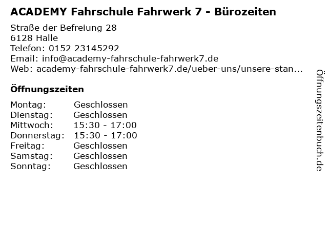 Branchen & Suchbegriffe zu ACADEMY Fahrschule Fahrwerk 7 - Bürozeiten:academy, anhänger, auto, bürozeiten, fahrlehrer, fahrschule, fahrunterricht, fahrwerk, führerschein, lernen, lkw, mofa, moped, motorrad, schulung, traktor, unterricht |