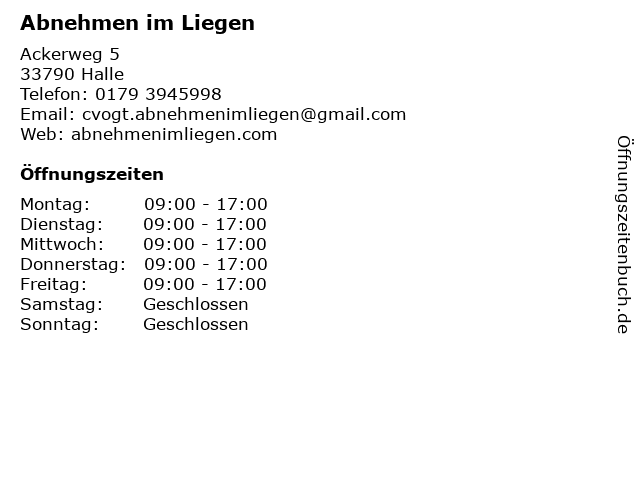 | Öffnungszeiten Abnehmen im Liegen in Halle anzeigen | |