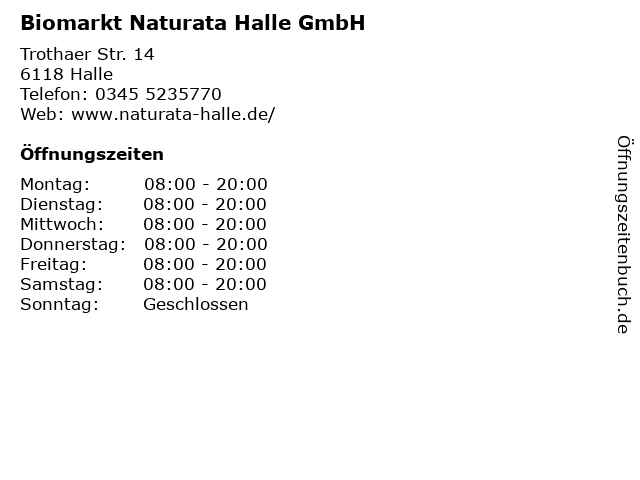 | Öffnungszeiten Biomarkt Naturata Halle GmbH in Halle anzeigen | |