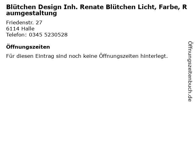 | Blütchen Design Inh. Renate Blütchen Licht, Farbe, Raumgestaltung anrufen | |