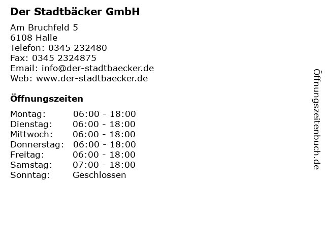 | Öffnungszeiten Der Stadtbäcker GmbH in Halle anzeigen | |